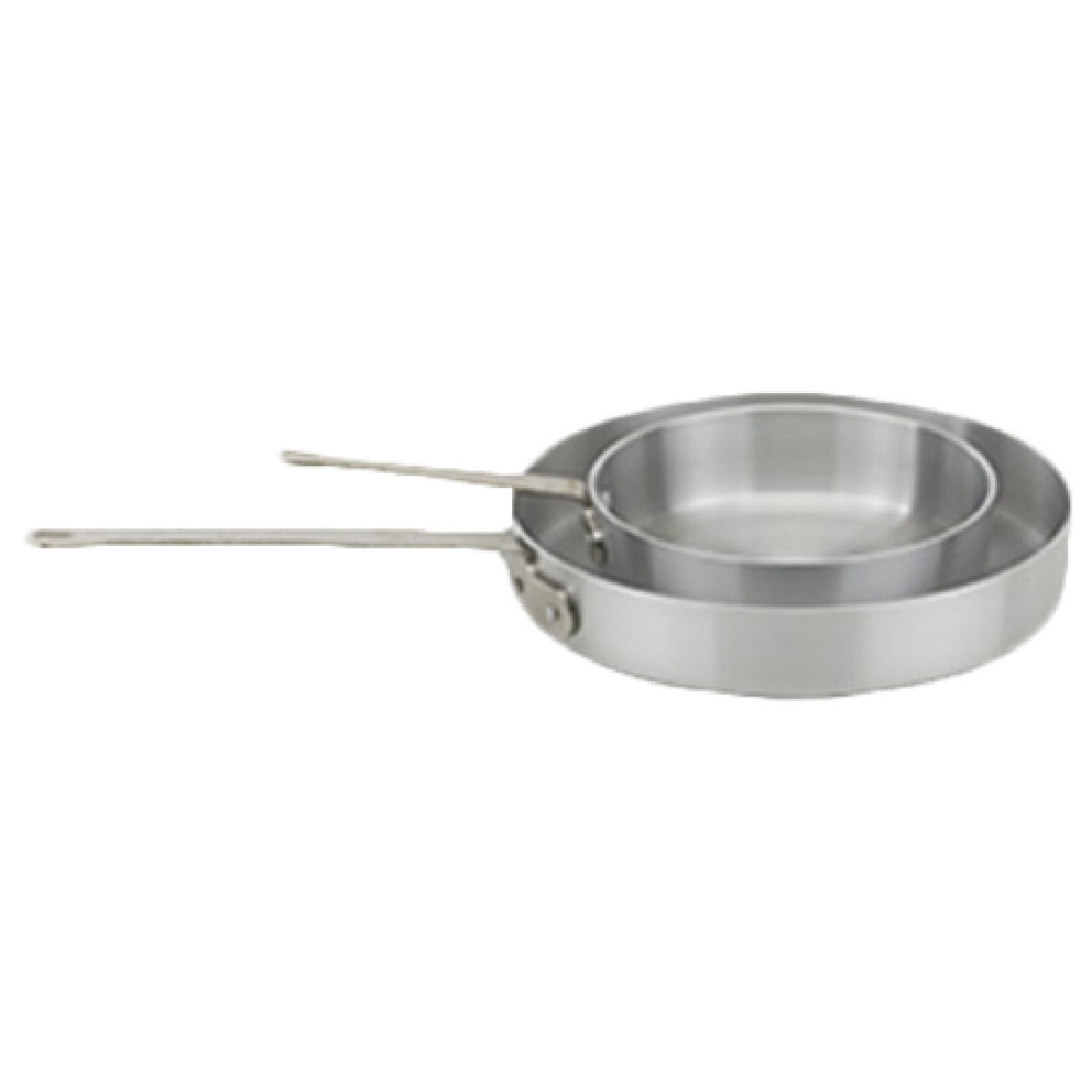 The Royal Industries ROY SAUTE S 5 Sauté Pan 5 Qt. Without Lid stands as a hallmark of durability and practicality, crafted with heavy weight aluminum for efficient heat distribution. This sauté pan, designed for versatility, measures 5 quarts in capacity, making it suitable for various cooking applications in both home and professional kitchens. The pan features a shallow design, enhancing ease of use for browning, searing, or pan-frying, while the flat riveted handle provides a secure grip and remains cool to the touch, ensuring safety during intense cooking sessions. Additionally, the handle is equipped with a hanging loop, offering convenient storage options when not in use. The absence of a lid allows chefs to utilize their own preferred covers or use the pan for tasks where a lid is not necessary. The Royal Industries ROY SAUTE S 5 is NSF certified, highlighting its compliance with strict standards for public health protection, making it an esteemed choice in the culinary industry. Its robust construction and thoughtful design cater to the diverse needs of chefs and cooking enthusiasts who demand reliability and performance from their kitchenware. This sauté pan is an indispensable tool for creating a wide array of dishes with precision and ease.