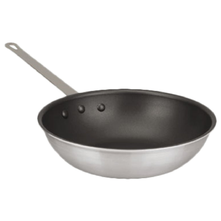 The Royal Industries ROY SF 13 S Stir Fry Skillet is a 13-inch cookware piece designed with a non-stick coating for enhanced cooking performance. Constructed from heavy-duty aluminum, this skillet combines durability with heat-conductive properties, making it suitable for both professional chefs and home cooking enthusiasts. The skillet features steep sides, which are particularly beneficial for stir-frying, allowing for easy stirring and preventing food from spilling over. Its narrow, flat bottom ensures stable placement on various heat sources while promoting even cooking. This skillet is ideal for a variety of culinary applications within the food service industry, from quick, high-heat stir-fries to slow-cooked dishes, offering versatility in meal preparation. The non-stick surface not only facilitates healthier cooking with minimal oil usage but also simplifies cleaning, making it a practical choice for busy kitchen environments. The Royal Industries ROY SF 13 S Stir Fry Skillet stands out as a reliable kitchen tool, engineered to meet the rigorous demands of both commercial and personal use, providing consistent results with every use.
