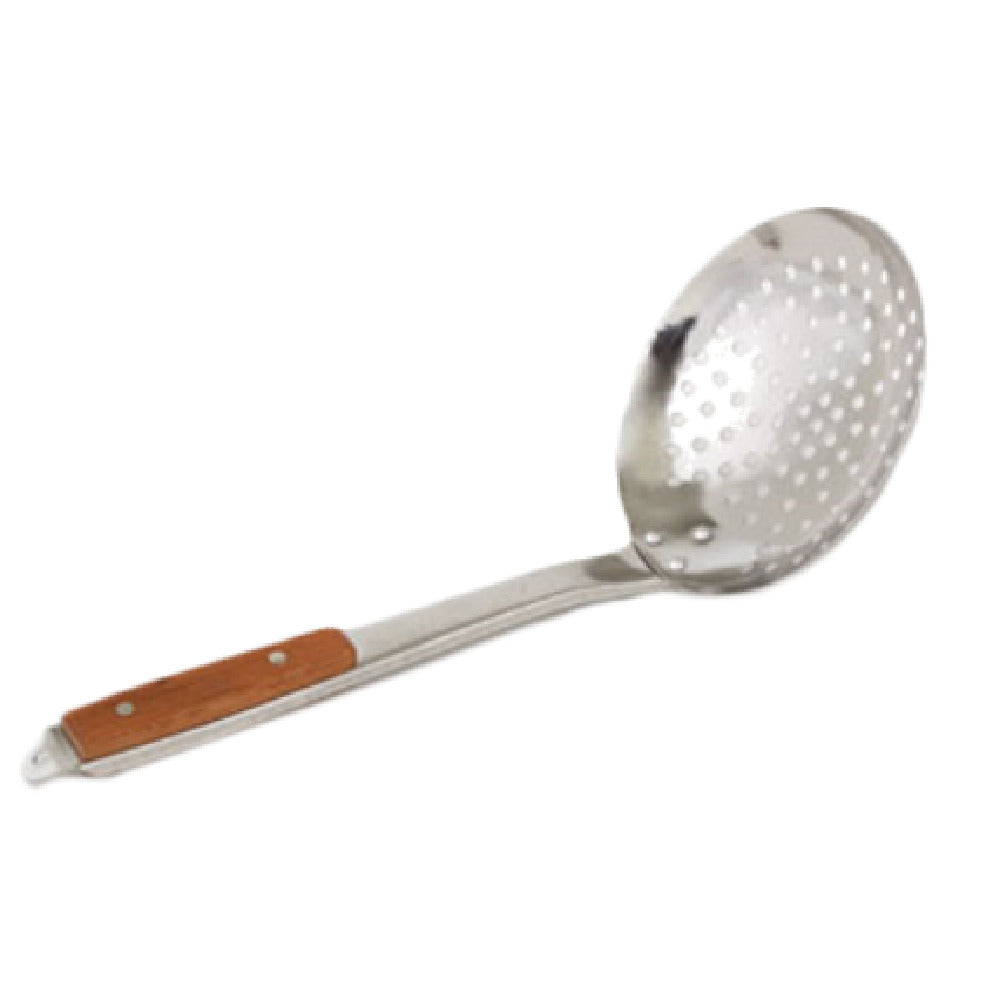 The Royal Industries ROY SKIM CH 8 Chinese Style Skimmer is a versatile kitchen tool that caters to various culinary needs with precision and efficiency. Measuring an 8-inch diameter, this skimmer is designed to handle a wide range of food preparations, making it an essential accessory for both professional chefs and home cooks. With a total length of 19 inches, it ensures comfortable reach and maneuverability during use. The skimmer features a perforated stainless steel head, allowing for effective draining and skimming of liquids, an essential requirement in many cooking processes such as frying and boiling. The perforations are meticulously designed to provide optimal liquid flow while retaining food securely. Moreover, the skimmer is equipped with a sturdy wooden handle, offering excellent grip and heat resistance, ensuring user safety and comfort. This well-crafted tool is ideal for Asian-style cooking, among other culinary applications, and is specifically constructed to withstand rigorous kitchen environments. The Royal Industries ROY SKIM CH 8 Chinese Style Skimmer seamlessly combines durability with functionality, making it a reliable choice for culinary professionals and cooking enthusiasts who value efficiency and quality in their kitchen tools.