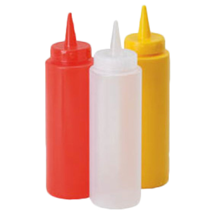 The Royal Industries ROY SO 8 R Squeeze Dispenser 8 Oz. Red stands out as a practical tool in any culinary environment, particularly catering to fast-paced kitchen settings and dining establishments. With an 8-ounce capacity, this squeeze dispenser is perfectly sized for precision in dispensing condiments, sauces, and dressings. The dispenser's vibrant red color not only adds a pop of color to kitchen tools but also aids in easy identification during use, a feature especially useful in busy kitchens where speed and accuracy are critical. Its design ensures ease of use, allowing for controlled dispensing and minimal waste of contents. Constructed for durability, the Royal Industries squeeze dispenser is suitable for both commercial and residential use, fitting seamlessly into restaurant operations or home kitchens. Its compact size offers convenient storage and maneuverability, making it an efficient choice for various applications within the food service industry. This product is an excellent tool for enhancing kitchen productivity and efficiency, ensuring that sauces and condiments are readily accessible and easily dispensed.