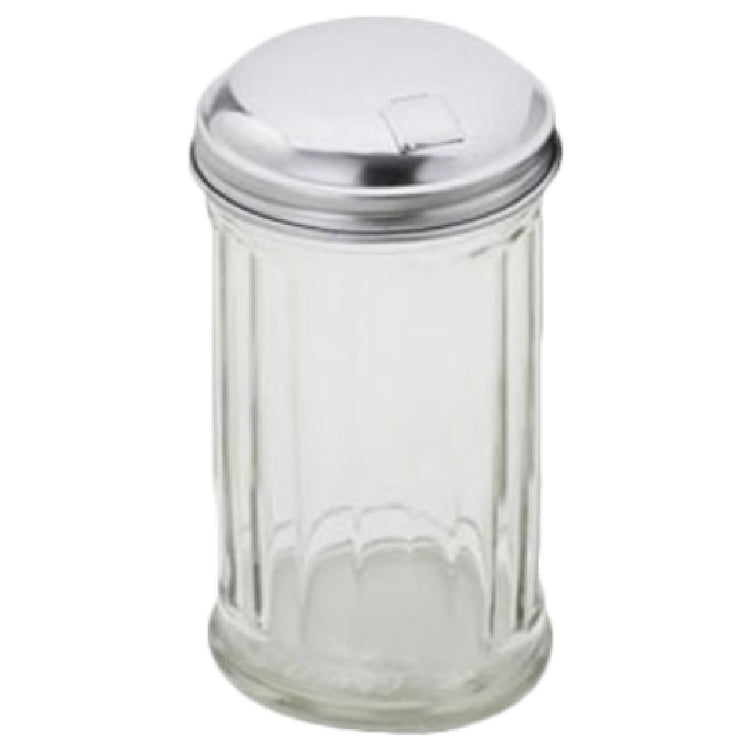 The Royal Industries ROY SP 12 GS Sugar Pourer 12 Oz. Paneled Glass Base is a versatile and durable addition to any restaurant, coffee shop, or home kitchen. With its 12 oz. capacity, this sugar pourer is perfectly sized for daily use, allowing for easy dispensing without the need for constant refills. The paneled glass base not only adds a touch of elegance but also provides a clear view of the contents, ensuring that you'll always know when it's time for a refill. The side flap stainless steel lid is designed for effortless pouring, minimizing spills and enhancing user convenience. This feature is particularly beneficial in fast-paced environments where efficiency is key. Additionally, the entire unit is dishwasher safe, making cleaning a breeze and maintaining hygiene standards simple. The clear construction of the pourer integrates seamlessly into a variety of settings, from upscale cafes to casual dining establishments. Royal Industries' commitment to quality is evident in this product's robust build and functional design, making it a reliable choice for both commercial and domestic markets. Its practical features combined with aesthetic appeal cater to an array of customers seeking a blend of utility and style in their tableware accessories.