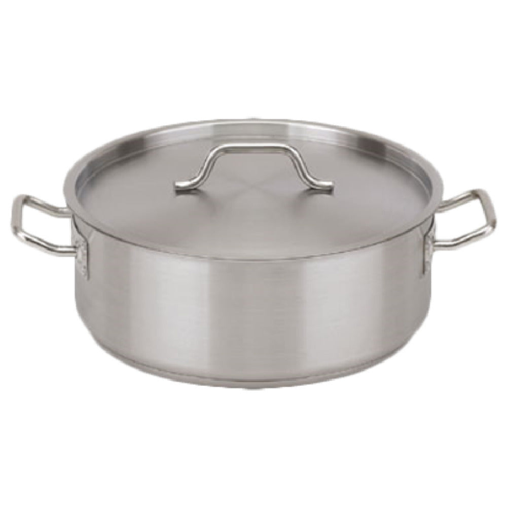 The Royal Industries ROY SS BRAZ 20 Brazier 20 Qt is a premium kitchen essential designed for various cooking needs, particularly suitable for professional chefs and culinary establishments. This brazier boasts a 20-quart capacity, making it ideal for preparing large quantities of food in commercial kitchens. A key feature is its anti-corrosive properties, which ensure longevity and durability, even with frequent use. The brazier is engineered with maximum magnetic conductivity, making it compatible with induction cooking technology, a desirable attribute for energy-efficient and fast cooking. Its construction includes a 3-ply encapsulated 4mm aluminum core bottom, which ensures even heat distribution and prevents hot spots, crucial for achieving consistently cooked meals. Accompanied by a stainless steel cover, it provides excellent heat retention and protection of its contents. The entire brazier is crafted from stainless steel, adding to its robustness and ease of cleaning, which is essential in maintaining high standards of hygiene in any kitchen. Certified by NSF, this brazier meets strict public health and safety standards, making it a reliable choice for culinary professionals. The Royal Industries ROY SS BRAZ 20 stands out in the market for its blend of functionality, durability, and compatibility with modern cooking techniques.