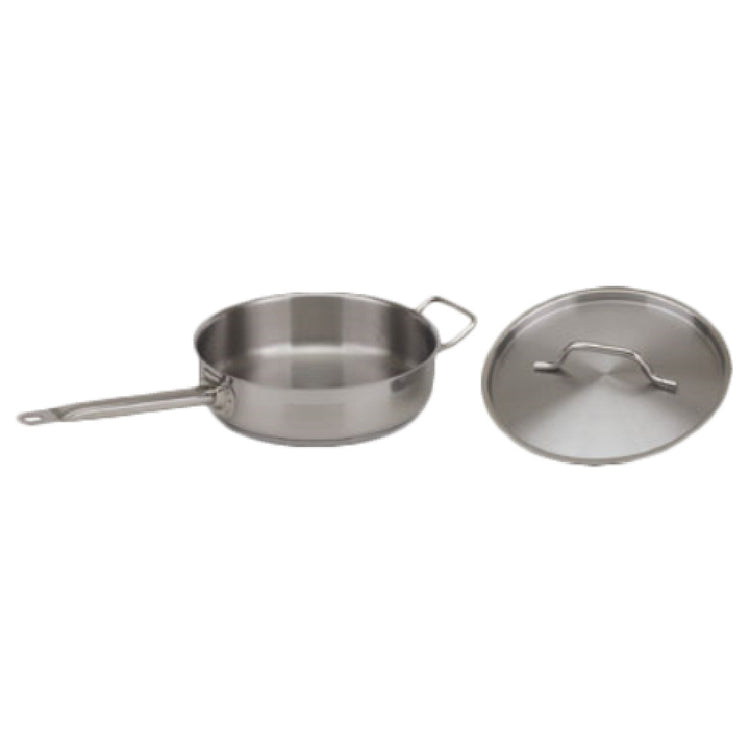 The Royal Industries ROY SS SAUTE 5 Saute Pan - 5 Qt. with Helper Handle is engineered to meet the diverse needs of culinary professionals and home cooks alike. With a generous 5-quart capacity, this pan is ideal for both small and large-scale cooking tasks. The construction features a 3-ply encapsulated 4mm aluminum core bottom, which ensures even heat distribution and prevents hotspots, crucial for precision cooking techniques. Its stainless steel construction not only contributes to its sleek and modern appearance but also imparts anti-corrosive properties, enhancing durability. This pan is optimized for induction cooking thanks to its maximum magnetic conductivity, making it a versatile tool across various stovetop types. The hollow handle design adds an ergonomic touch, providing comfort and ease during handling. Additionally, the helper handle offers extra support when lifting or transporting the pan, especially when full. For added convenience and versatility, the pan comes complete with a stainless steel cover. Certified by NSF, it adheres to strict public health and safety standards, making it a trusted choice in professional kitchens. Whether in a bustling restaurant environment or a home kitchen, the Royal Industries ROY SS SAUTE 5 Saute Pan is a reliable asset for achieving culinary excellence.