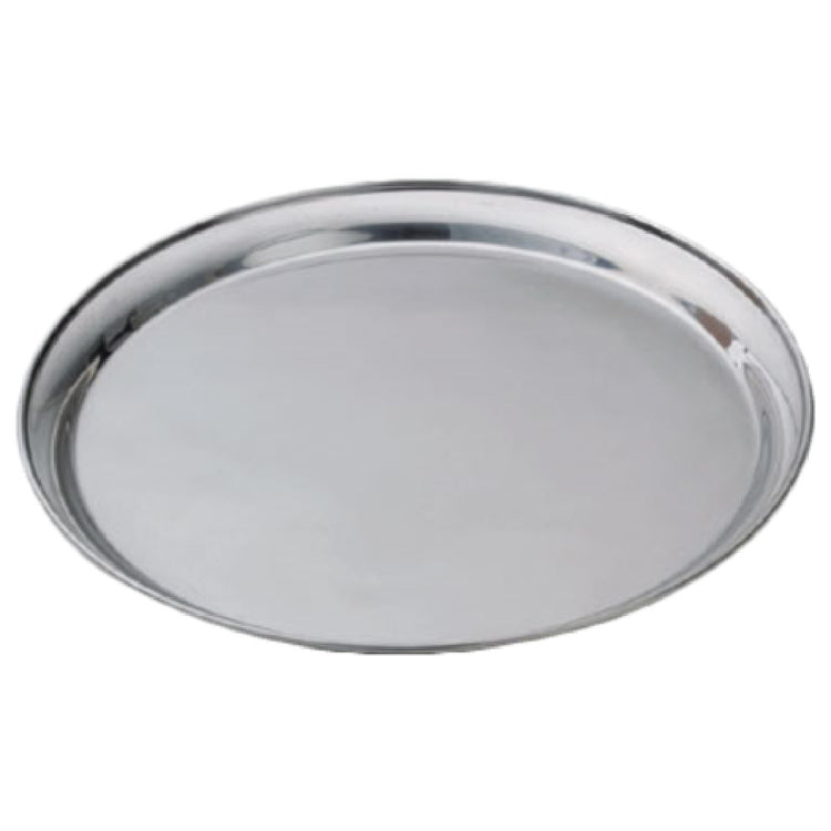 The Royal Industries ROY ST 14 Service Tray is a meticulously crafted 14-inch diameter round tray made from high-quality stainless steel, providing durability and a sleek, modern appearance. Its size and robust construction make it an essential tool for a variety of industries, including hospitality, catering, and food service. The stainless steel material offers excellent resistance to corrosion and wear, ensuring long-lasting performance even with frequent use. This service tray is ideal for presenting an array of items, from beverages to appetizers, with a professional touch. Its round design facilitates easy handling and maneuverability, which is particularly valuable in fast-paced service environments. The Royal Industries ROY ST 14 Service Tray is designed to meet the needs of both casual and upscale dining settings, offering versatility and style. Its polished finish enhances its aesthetic appeal, making it suitable for both back-of-house and front-of-house applications. This service tray stands out as a reliable and practical choice for businesses aiming to enhance service efficiency while maintaining a high standard of presentation. Its sturdy construction and classic design make it a valuable addition to any establishment seeking to streamline its service operations.
