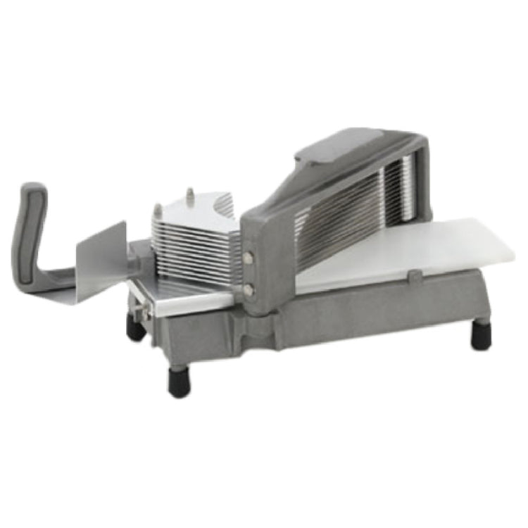 The Royal Industries ROY TW 316 Tomato Slicer is designed for precision and efficiency, providing consistent 3/16-inch slices that are ideal for a variety of culinary applications. This slicer is equipped with a table catch, facilitating an organized and tidy slicing process by collecting sliced tomatoes directly from the cutting surface. Its robust construction ensures durability, making it a reliable tool in high-volume food service environments such as restaurants, cafeterias, and catering businesses. The ROY TW 316 is a valuable asset for chefs and kitchen staff who require speed and consistency in their tomato preparation. By delivering uniform slices, it enhances both the presentation and portion control of dishes. This slicer not only improves efficiency but also maintains the quality and freshness of the produce being processed. With its focus on practical design and precision, the Royal Industries Tomato Slicer aids in streamlining kitchen operations, ultimately contributing to better productivity and reduced prep time. Its inclusion of a table catch further adds to its convenience, minimizing mess and supporting cleanliness in a fast-paced kitchen setting. This slicer represents an indispensable tool for any professional kitchen aiming for efficiency and quality in their food preparation processes.