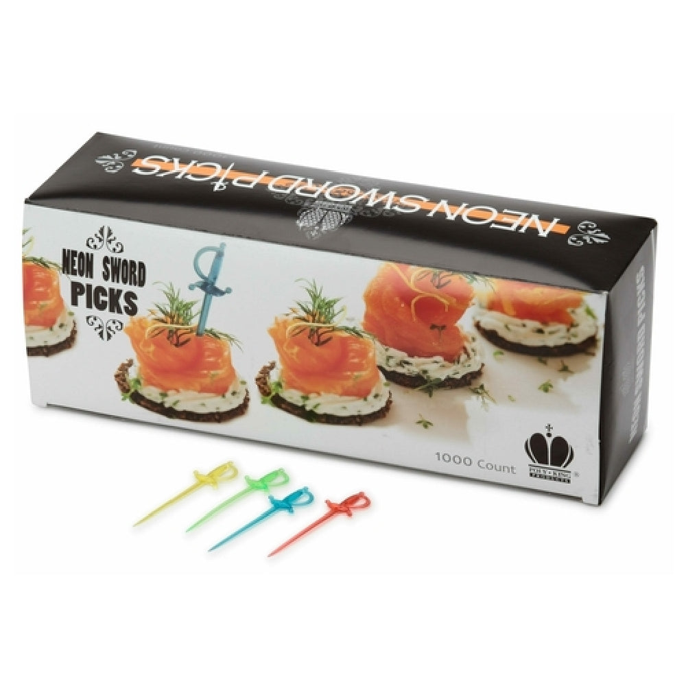 The Royal Industries RSWP Sword Picks 3" Mixed Colors are an essential accessory for both culinary presentations and cocktail garnishing, featuring a length of 3 inches for versatile use. Each pack contains 1,000 picks, and they are conveniently packaged in a case of 10 packs, offering a total of 10,000 picks per case, making them ideal for large events or high-volume establishments. The mixed color variety adds a visually appealing element to any setting, enhancing the aesthetic appeal of appetizers and beverages alike. Crafted with attention to detail, these sword picks are designed for durability and ease of use, ensuring a reliable tool for professional chefs and bartenders. The bulk packaging is particularly beneficial for catering companies, restaurants, and bars looking to maintain a consistent supply of quality picks. By combining practicality with a splash of color, the Royal Industries RSWP Sword Picks 3" Mixed Colors provide a unique value proposition that caters to the diverse needs of different segments within the hospitality industry, enhancing presentation while ensuring functionality.