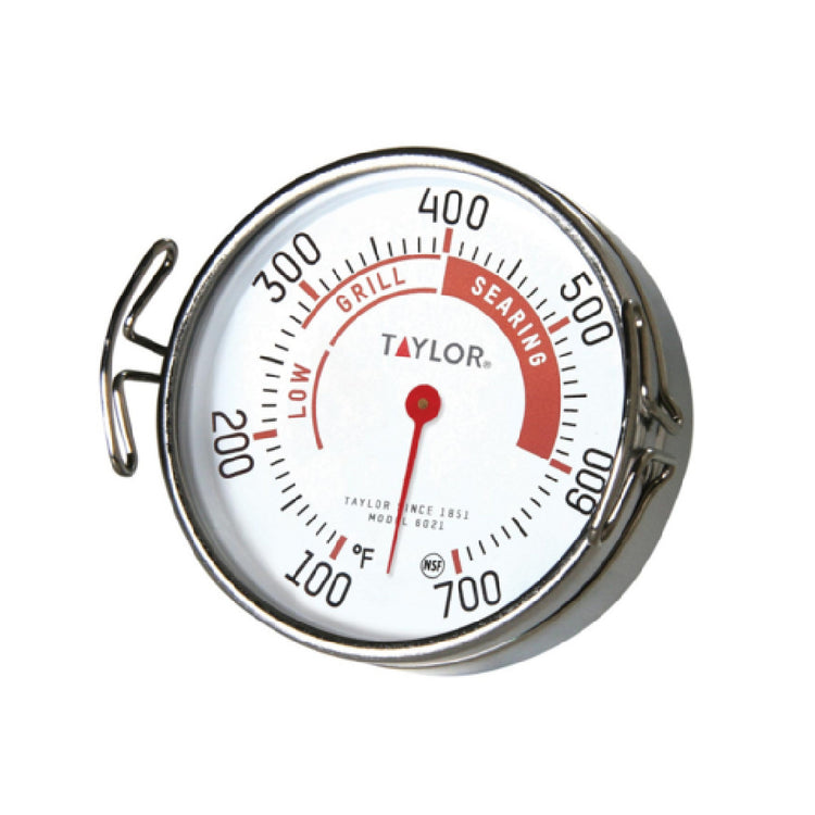 The Royal Industries TAY 6021 Surface Temperature Thermometer is a precision instrument designed for monitoring grill or any surface temperature to achieve optimal searing. With a broad temperature range of 100°F to 700°F (50°C to 350°C), this thermometer caters to a variety of professional cooking applications. It features a 2-inch dial, providing clear and immediate readings, which is essential for chefs and culinary experts who require accuracy in temperature control. This thermometer is equipped with grill and searing zone indicators, enhancing its functionality by allowing users to pinpoint the exact temperature needed for different cooking techniques. Packaged six per case, the Royal Industries TAY 6021 is ideal for large-scale culinary operations, including commercial kitchens and culinary schools, where precise temperature monitoring is crucial for maintaining quality and consistency in food preparation. Its durable construction makes it a reliable tool for frequent use, ensuring that it withstands the demands of a busy kitchen environment. The Royal Industries TAY 6021 Surface Temperature Thermometer stands out for its combination of accuracy, durability, and ease of use, making it a valuable asset for professionals seeking precise control over grilling and searing processes.