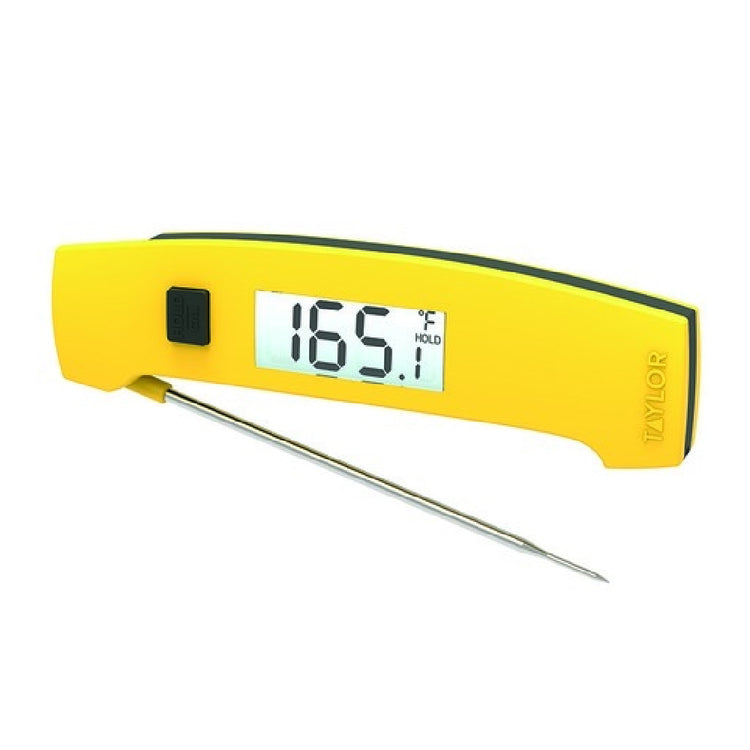 The Royal Industries TAY 9868FDA Folding Thermocouple Thermometer is a digital thermometer designed for a wide range of applications within the food service industry. Featuring a 1.5mm diameter step-down probe, this thermometer ensures precision and accuracy in temperature readings. The type T thermocouple technology provides reliable measurements, accommodating the needs of various professional kitchens. With a pivoting probe that rotates 270 degrees, it offers flexibility and ease of use in diverse culinary settings. This thermometer operates within a temperature range of -40°F to 572°F (-40°C to 300°C), making it suitable for both high-heat and sub-zero environments. The NSF certification guarantees compliance with industry standards, emphasizing its safety and quality. Sold in cases of two, the Royal Industries TAY 9868FDA is an essential tool for chefs, bakers, and food safety professionals who require accurate, durable, and versatile temperature measurement solutions. Its clever folding design not only enhances portability but also protects the probe when not in use, extending the product's lifespan. This thermometer is particularly useful for ensuring food safety and quality control, making it a crucial asset in maintaining high standards in food preparation and service.