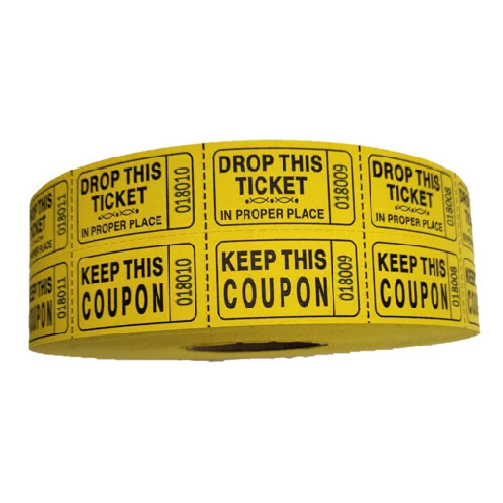 Royal Industries TIC RAF YELLOW Ticket-Double Raffle Yellow (2000) Tickets Per Roll (20 Roll Per Case)