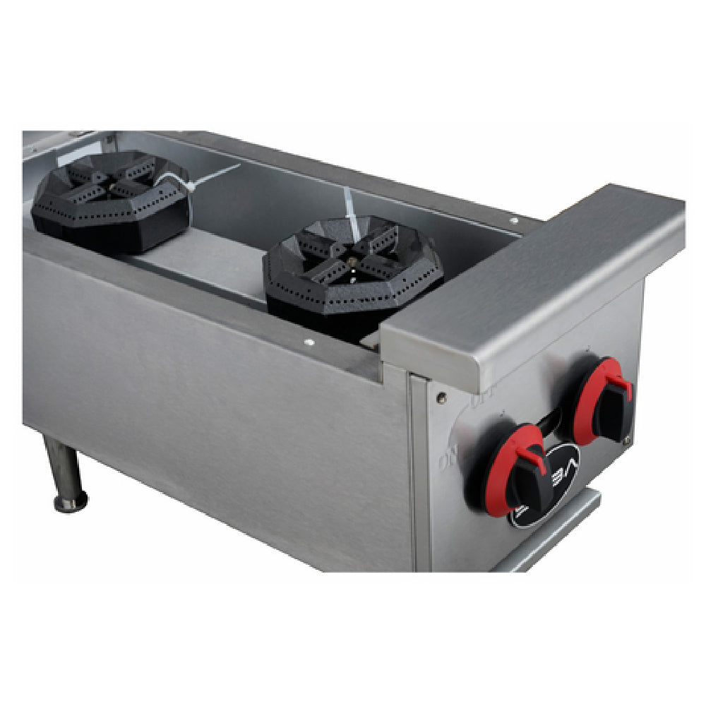 SABA , HP-2, Hotplate, countertop, gas, 12"W, (2) 25,000 BTU octagon open cast iron burners, 12" x 12" cast iron grates, manual controls, pilot, crumb tray, stainless steel front & sides, adjustable legs, 50,000 BTU, cETLus, ETL-Sanitation