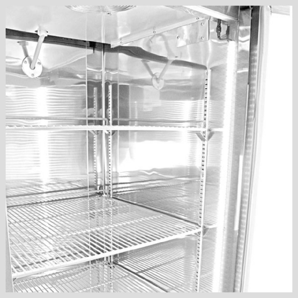 SABA , S-23RG, Refrigerator Merchandiser, reach-in, one-section, 29"W, 23.0 cu. ft., 650 liter capacity, electronic control with digital display, (1) full-height glass door, pull handle, (3) adjustable shelves, LED interior lighting, self-contained bottom mounted refrigeration, stainless steel interior & exterior, (4) 5" casters (2 with front brakes), 1/4 HP, 115v/60/1-ph, 7.4 amps, NEMA 5-15P, cETLus, NSF