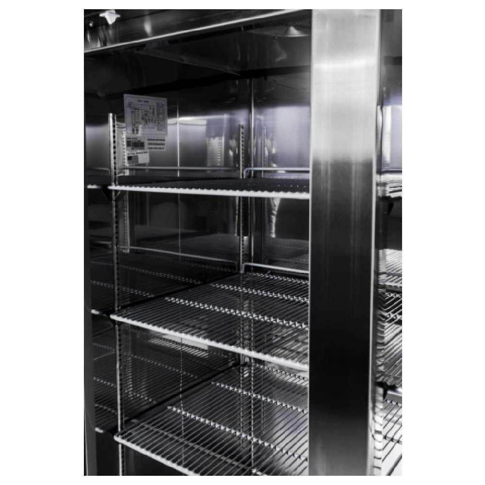 SABA , S-47R, Refrigerator, reach-in, two-section, 54"W, 47.0 cu. ft., 1321 liter capacity, electronic control with digital display, (2) full-height solid doors, pull handles, (6) adjustable shelves, self-contained bottom mounted refrigeration, stainless steel interior & exterior, (4) 5" casters (2 with front brakes), 1/2 HP, 115v/60/1-ph, 9.4 amps, NEMA 5-15P, cETLus, NSF