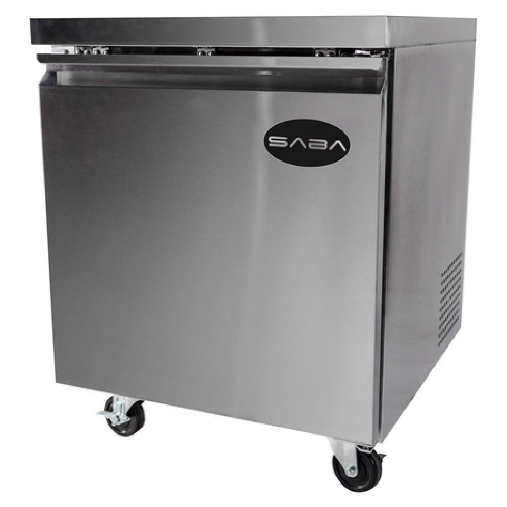 SABA , SUC-27R, Under-Counter Refrigerator, one-section, 27" W, 6.3 cu. ft./177 liter capacity, digital temperature control, range 33°F to 41°F, (1) door & adjustable shelf, self-contained rear mounted refrigeration, stainless steel exterior & interior, (4) 5" casters, 1/4 HP, 115v/60/1-ph, 4.3 amps, NEMA 5-15P, cETLus, NSF