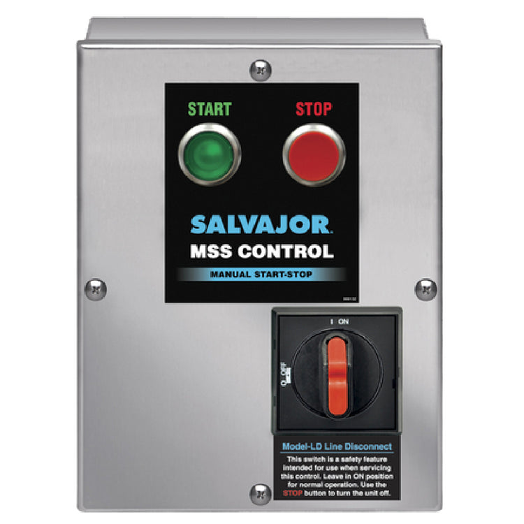 The Salvajor MSS-LD Start/stop Push Button Control With Safety Line Disconnect NEMA 4 Stainless Steel Enclosure is meticulously engineered for enhanced operational control in demanding industrial environments. This advanced control system features a start/stop push button interface, ensuring intuitive and straightforward machine operation that enhances user efficiency. The incorporation of a safety line disconnect adds a crucial layer of protection, allowing operators to safely manage power interruptions and maintenance without compromising on safety standards. Enclosed in a NEMA 4 stainless steel casing, the control system is designed to withstand harsh environmental conditions, offering superior resistance to dust, dirt, and moisture. This makes it an excellent choice for a wide range of market segments, including food processing facilities, manufacturing plants, and various commercial settings where robust and reliable control systems are paramount. The durable stainless steel construction not only provides longevity but also adheres to stringent safety and quality regulations, making the Salvajor MSS-LD an indispensable component in maintaining operational integrity and efficiency across diverse industrial applications.