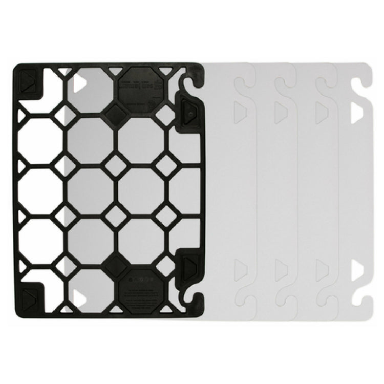 San Jamar CBQGDK1520 QuadGrip™ Cutting Board Expansion Kit 15" X 20" Includes: (1) Black Non-slip Rubber Frame & (4) White Double Sided Cutting Boards With (2) Food Safety Hooks