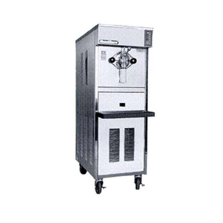 The SaniServ 614SAS Shake Freezer Floor Model Air or Water Cooled is a high-capacity unit engineered for optimal performance and efficiency in commercial settings. Featuring a single dispensing head, this machine utilizes the Select A Shake system to offer four distinct flavors, catering to diverse consumer preferences. With a substantial 20 qt. mix capacity, it ensures a steady supply of product, making it ideal for high-demand environments. The unit is built with a welded steel frame and encased in a stainless steel exterior, providing robust durability and a sleek appearance. A self-contained refrigeration system, available with both air or water cooling options, maintains consistent temperatures and product quality. The automatic consistency control ensures perfect texture with every serving, while the visual mix-out system alerts operators to low mix levels, preventing downtime. It is powered by a 1/2 HP dasher and a 2 HP compressor, promoting efficient operation. Mobility is facilitated by included casters, allowing for easy repositioning within any commercial space. Certified by UL, NSF & cUL, the SaniServ 614SAS complies with essential safety and sanitation standards, making it a reliable and versatile choice for shakes and frozen beverages in various service segments.