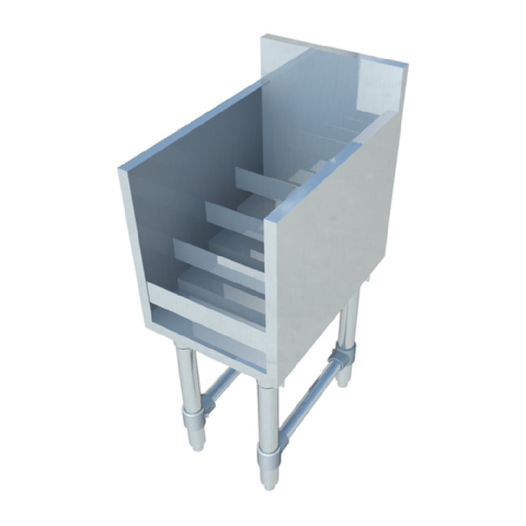 Sapphire Manufacturing, SMLDR-12, Underbar Liquor Bottle Display Unit, freestanding, 12"W x 18"D x 33-1/4"H overall size, (4) steps, 18/304 stainless steel construction, galvanized steel legs & bracing with adjustable plastic bullet feet, NSF