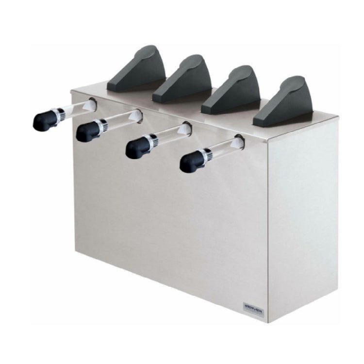 The Server Products 07200 SE-4 SERVER EXPRESS™ Quadruple Countertop is a versatile and efficient solution for dispensing condiments and dressings in various food service environments. This unit is equipped with four Express™ pumps that efficiently dispense ambient condiments from four 1-1/2 gallon pouches, each featuring a 16 mm fitment. A full portion yields 1 oz., with the ability to reduce this in 1/4 oz. increments, offering precise control over portion sizes. Constructed with a durable stainless steel base, this product ensures longevity and ease of maintenance. The Server Products 07200 SE-4 is ADA Compliant, indicating its accessibility and usability for all customers, and is BPA free, aligning with health and safety standards. This product is NSF certified, highlighting its compliance with public health and sanitation guidelines. Ideal for fast-paced environments such as cafeterias, restaurants, and concession stands, the Server Products 07200 SE-4 SERVER EXPRESS™ Quadruple Countertop provides a reliable and user-friendly option for food service professionals looking to streamline their condiment dispensing operations.