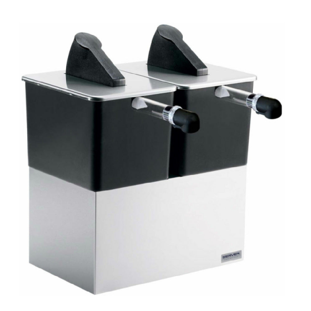 The Server Products 07300 SS-2SE TWIN STAND SERVER EXPRESS™ is a versatile rectangular countertop unit, expertly designed for dispensing ambient condiments and dressings. With its dual Express™ pumps, it efficiently operates with two 1-1/2 gallon pouches, equipped with a 16 mm fitment. This precision-engineered system dispenses a full portion of 1 oz, adjustable in 1/4 oz increments, catering to diverse customer needs and serving sizes. Made with a durable stainless steel base and complemented by black thermoset plastic shrouds, this unit ensures long-lasting performance and aesthetic appeal. It is ADA compliant, aligning with accessibility standards, and is BPA free, underscoring its commitment to safety. The NSF certification further attests to its hygiene and quality compliance, making it a reliable choice for commercial kitchen environments. This product's unique construction and functionality make it well-suited for various segments within the food service industry, including fast-food chains, cafeterias, and casual dining establishments, where efficient and hygienic condiment dispensing is paramount.