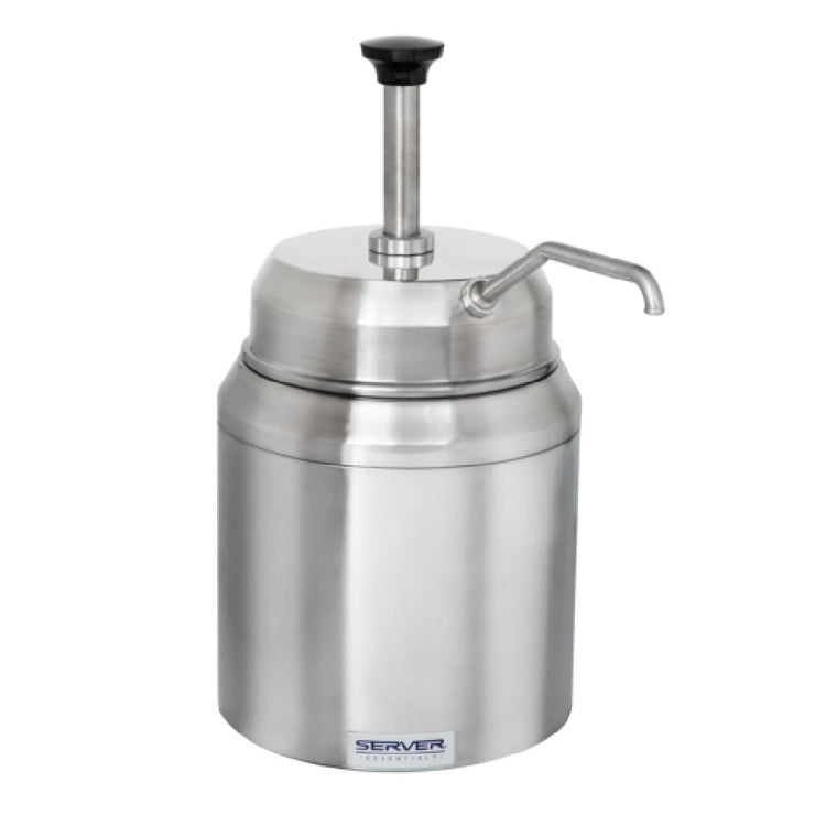 The Server Products 94070 CHILLED THICK FOOD SERVER is a stainless steel device engineered for optimal performance in serving cold, thick foods such as mayonnaise or tartar sauce in warm environments, making it an essential tool for food service operations. It features a portion-controlled stainless steel pump, ensuring consistent flavor delivery and allowing for precise dispensing with a maximum of 1 oz, adjustable in 1/8 oz increments through included collars. The polished stainless steel base is designed to accommodate a 3 qt jar (94009), maintaining the contents at a safe serving temperature for extended periods using Universal Ice Packs (100515), both of which are included. This chilled server is particularly valuable for segments within the food industry where maintaining the temperature of thick condiments is crucial, such as catering services, restaurants, and event venues that operate in environments where ambient temperatures may compromise food safety and quality. The robust construction and technical specifications of this food server highlight its utility and reliability, providing a dependable solution for maintaining the freshness and consistency of condiments and sauces critical to culinary operations.