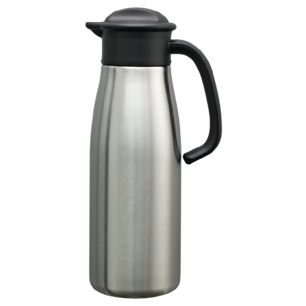Service Ideas, 1000NK-N, Portion Control Carafe, 1 liter (33.8 oz.), 3-3/4" x 5-1/2" x 11", retention: 4-6 hours, dishwasher safe, black locking lid, stainless steel vacuum insulation, 18/8 stainless steel, brushed finish, Agion® anti-microbial clear coat finish, NSF (Priced per each, packed 12 each per case)