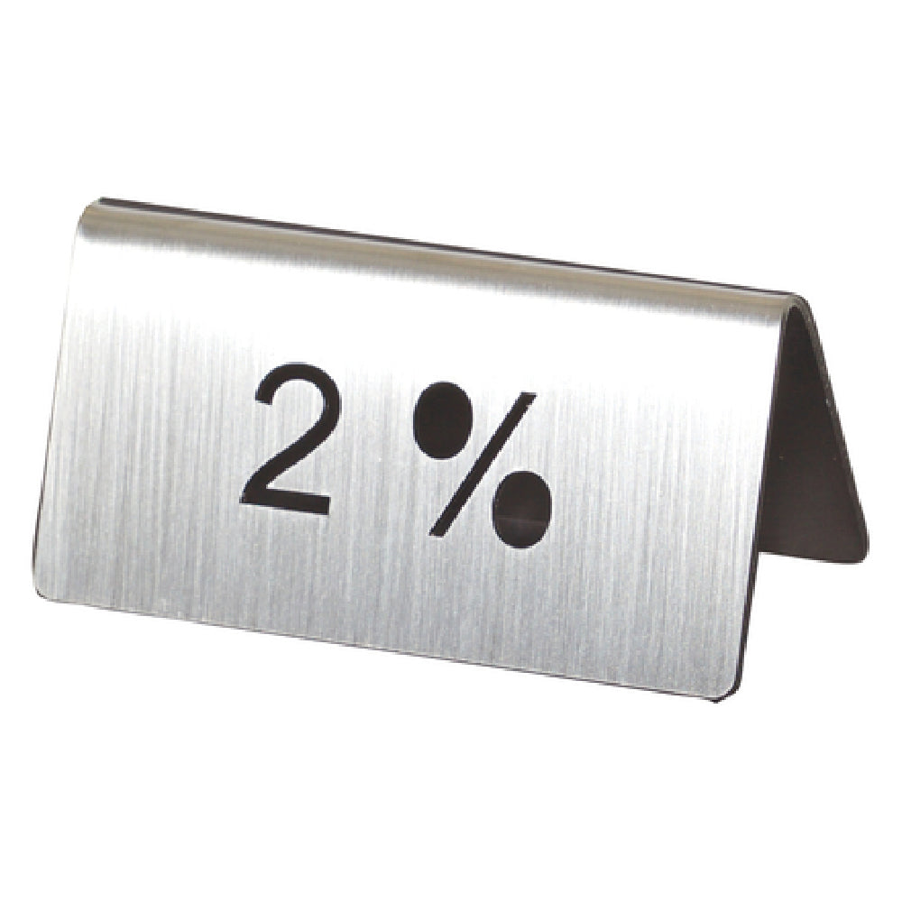 Service Ideas, 1C-BF-2PCT-MOD, Beverage ID Tent, "2%", 1-1/2"H x 3"W, laser-cut, dishwasher safe (hand washing is recommended), 18/8 stainless steel, brushed finish, Made in USA (Priced per each, packed 6 each per case)