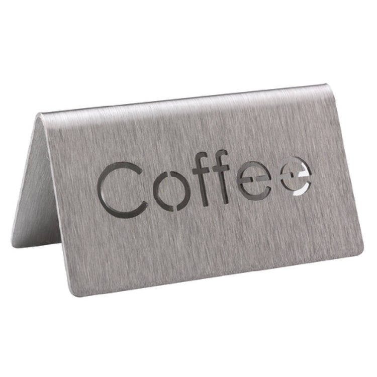 Service Ideas, 1C-BF-COFFEE-MOD, Beverage ID Tent, "Coffee", 1-1/2"H x 3"W, laser-cut, dishwasher safe (hand washing is recommended), 18/8 stainless steel, brushed finish, Made in USA (Priced per each, packed 6 each per case)