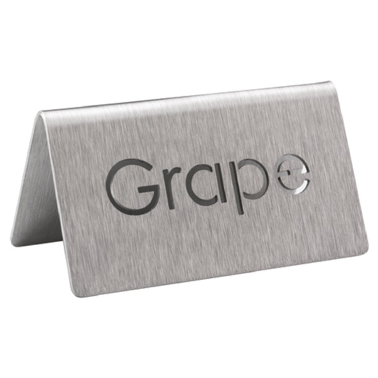 Service Ideas, 1C-BF-GRAPE-MOD, Beverage ID Tent, "Grape", 1-1/2"H x 3"W, laser-cut, dishwasher safe (hand washing is recommended), 18/8 stainless steel, brushed finish, Made in USA (Priced per each, packed 6 each per case)