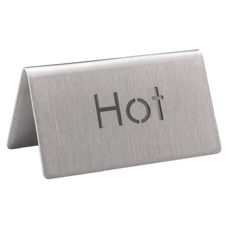 Service Ideas, 1C-BF-HOT-MOD, Beverage ID Tent, "Hot", 1-1/2"H x 3"W, laser-cut, dishwasher safe (hand washing is recommended), 18/8 stainless steel, brushed finish, Made in USA (Priced per each, packed 6 each per case)
