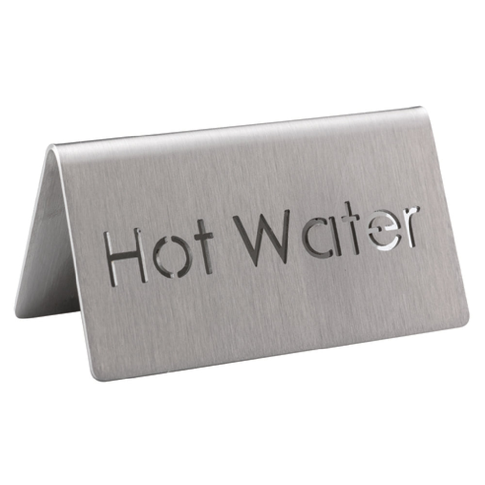 Service Ideas, 1C-BF-HOTWATER-MOD, Beverage ID Tent, "Hot Water", 1-1/2"H x 3"W, laser-cut, dishwasher safe (hand washing is recommended), 18/8 stainless steel, brushed finish, Made in USA (Priced per each, packed 6 each per case)