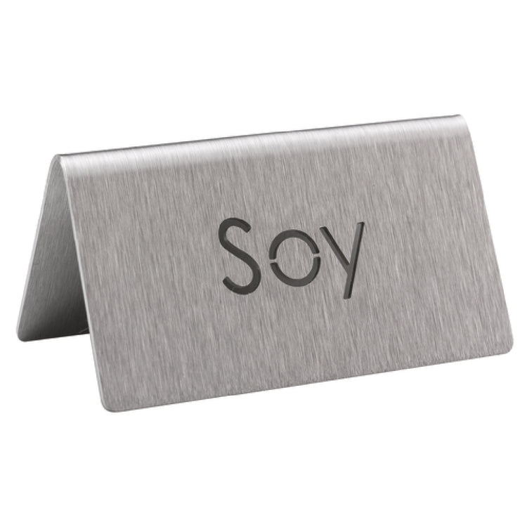 Service Ideas, 1C-BF-SOY-MOD, Beverage ID Tent, "Soy", 1-1/2"H x 3"W, laser-cut, dishwasher safe (hand washing is recommended), 18/8 stainless steel, brushed finish, Made in USA (Priced per each, packed 6 each per case)