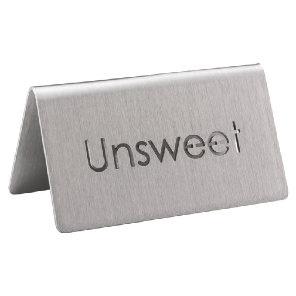 Service Ideas, 1C-BF-UNSWEET-MOD, Beverage ID Tent, "Unsweet", 1-1/2"H x 3"W, laser-cut, dishwasher safe (hand washing is recommended), 18/8 stainless steel, brushed finish, Made in USA (Priced per each, packed 6 each per case)