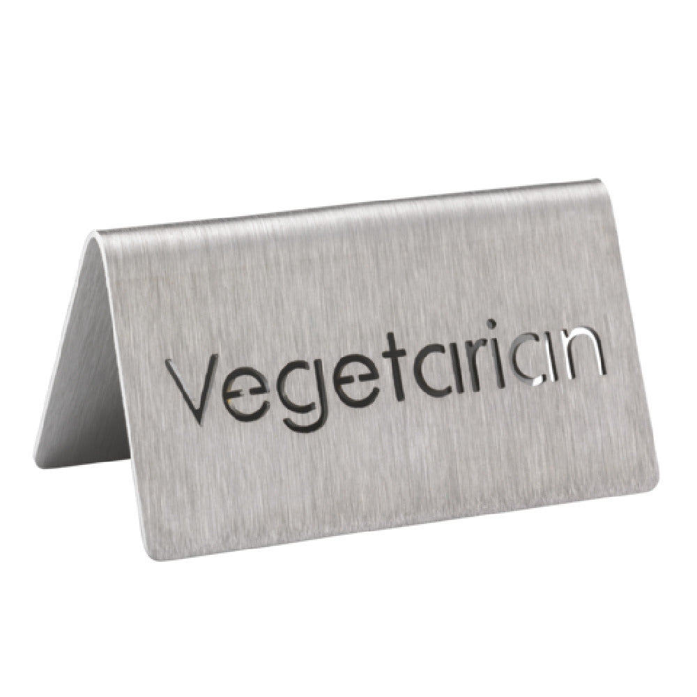 Service Ideas, 1C-BF-VEGETARN-MOD, Beverage ID Tent, "Vegetarian", 1-1/2"H x 3"W, laser-cut, dishwasher safe (hand washing is recommended), 18/8 stainless steel, brushed finish, Made in USA (Priced per each, packed 6 each per case)