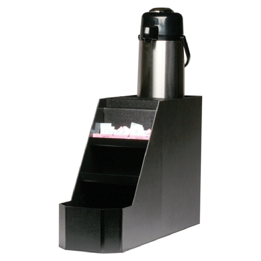 Service Ideas, APS1CBL, Airpot Stand, 7-3/4" x 24-1/4" x 16", holds (1) airpot (not included) with base dia. of 6" or 7-1/4", 3-compartment for condiments, removeable grate, reinforced corners, interlock system, hand wash, styrene plastic, black (Priced per each, packed 6 each per case)