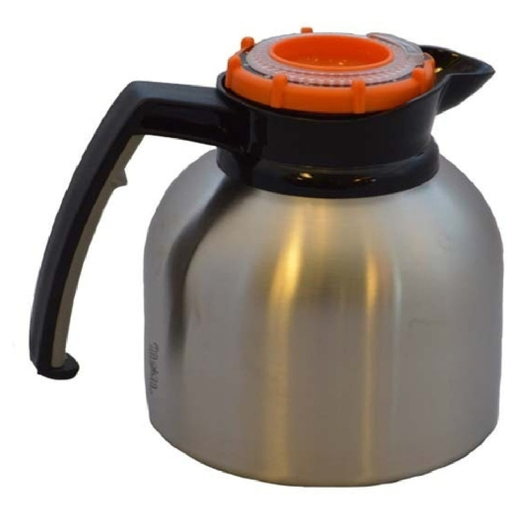 Service Ideas, BNP19ORV4, Brew 'N' Pour® Carafe, 1.9 liter (64.2 oz.), 6-1/2" x 8-1/2" x 7-3/4"H, heat retention 4-6 hours, ergonomic handle, dishwasher safe, vacuum insulation, orange brew-thru clock dial freshness tracking lid, 18/8 stainless steel, brushed finish, NSF (Priced per each, packed 6 each per case)