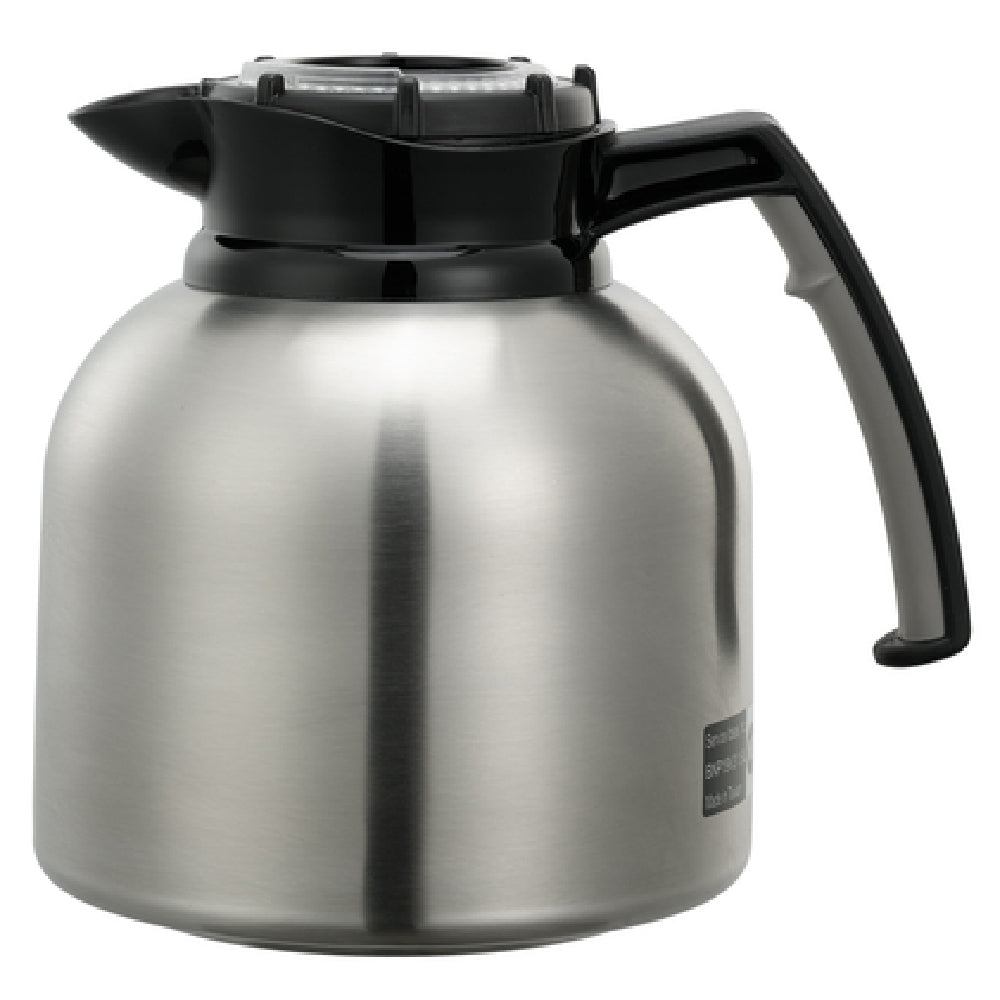 Service Ideas, BNP19V4, Brew 'N' Pour® Carafe, 1.9 liter (64.2 oz.), 6-1/2" x 8-1/2" x 7-3/4"H, heat retention 4-6 hours, ergonomic handle, dishwasher safe, vacuum insulation, black brew-thru clock dial freshness tracking lid, 18/8 stainless steel, brushed finish, NSF (Priced per each, packed 6 each per case)