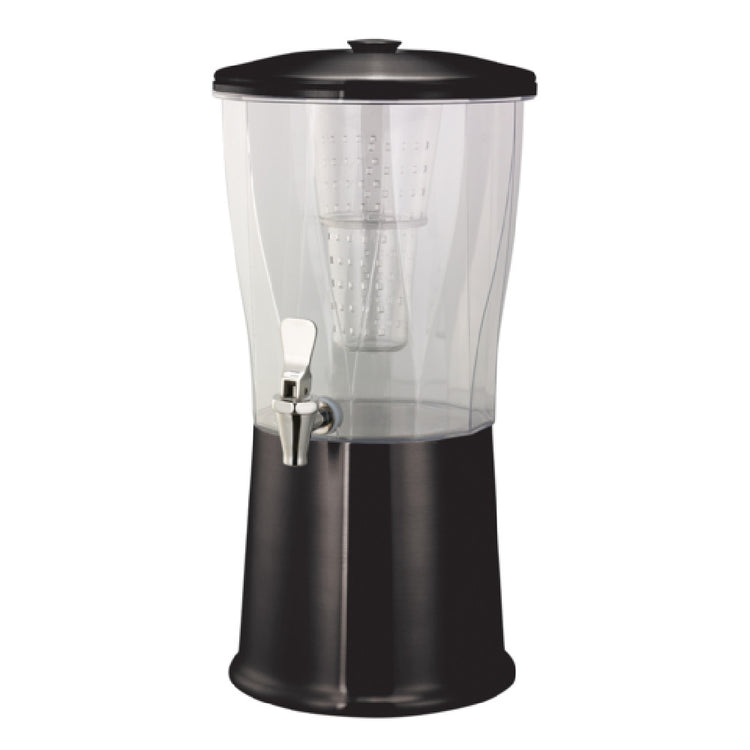 Service Ideas, CBDRT3BXSS, Beverage Dispenser, 3 gallon (384 oz.), 11" x 12" x 22", includes: removable infuser tube, stainless spigot, and (3) flavor indicator stickers: "Now Serving", "Iced Tea", "Water" & "Lemonade", clear BPA Free Tritan container (dishwasher safe), stainless steel lid & base (hand wash only), black onyx finish, NSF