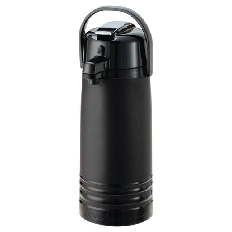 Service Ideas, ECAL22PBLMAT, Eco-Air® Airpot, 2.2 liter (74.4 oz.), 6" x 8" x 16", retention: 6-8 hours, ribbed body, glass liner, lever style, black lid, vacuum insulated, hand wash (do not submerge), plastic, black, matte finish, NSF (Priced per each, packed 6 each per case)