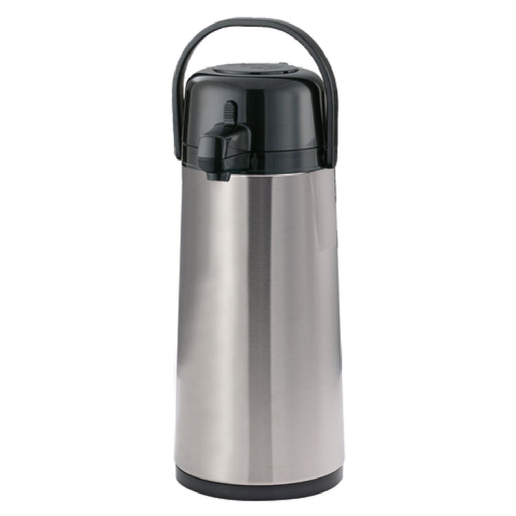 Service Ideas, ECAS22S, Eco-Air® Airpot, 2.4 liter (81.1 oz.), 6" x 8" x 16", retention: 4-6 hours, smooth body, stainless steel liner, pump style, black lid, vacuum insulated, hand wash (do not submerge), stainless steel, NSF (Priced per each, packed 6 each per case)