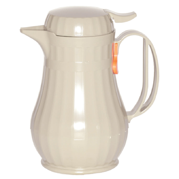 Service Ideas, ECO6LA, Eco-Serv™ Server, 0.6 liter (20 oz.), 4-3/4" x 6-3/4" x 8", retention: 2-3 hours, push button lid, foam insulation, snap-on decaf indicator, dishwasher safe (lid is not dishwasher safe), ABS plastic, latte brown, BPA free, Made in USA