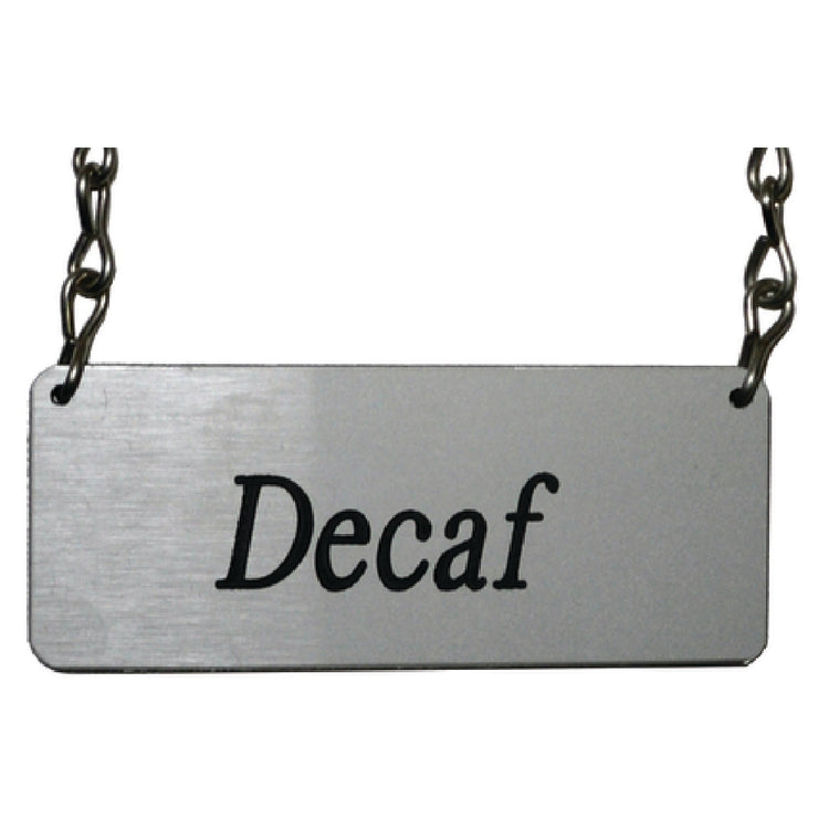 Service Ideas, IDCHDE, ID-Chain, "Decaf", for airpot cover-ups, 2-1/2" X 1-1/2", clean with cloth, metal chain, stainless steel, brushed finish, Made in USA (Priced per each, packed 6 each per case)