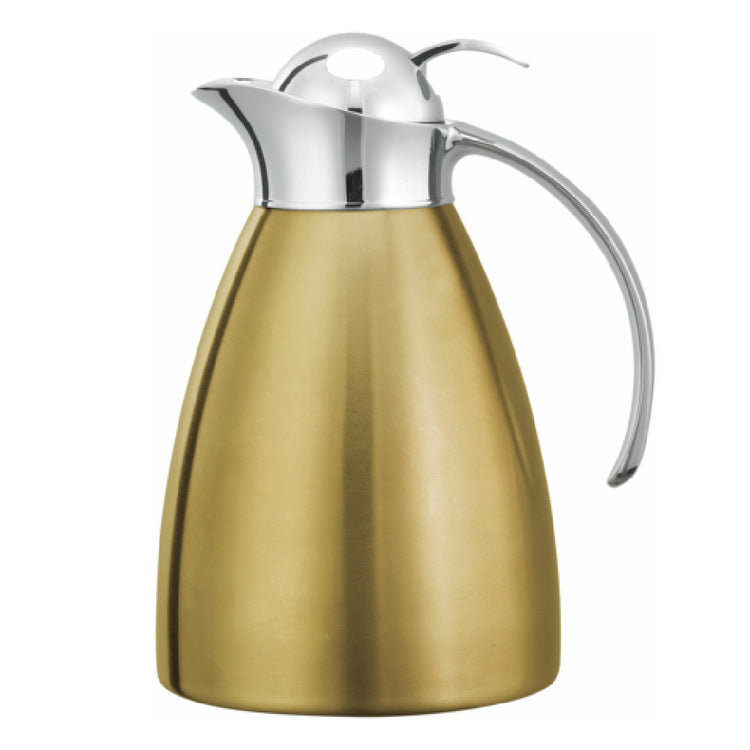 Service Ideas, MAR10BSPBVG, Marquette Series Carafe, 1 liter (33.8 oz.), 4-3/4" x 6" x 8-1/4", retention: 4-6 hours, dishwasher safe, stainless vacuum insulation, brushed stainless steel, vintage gold