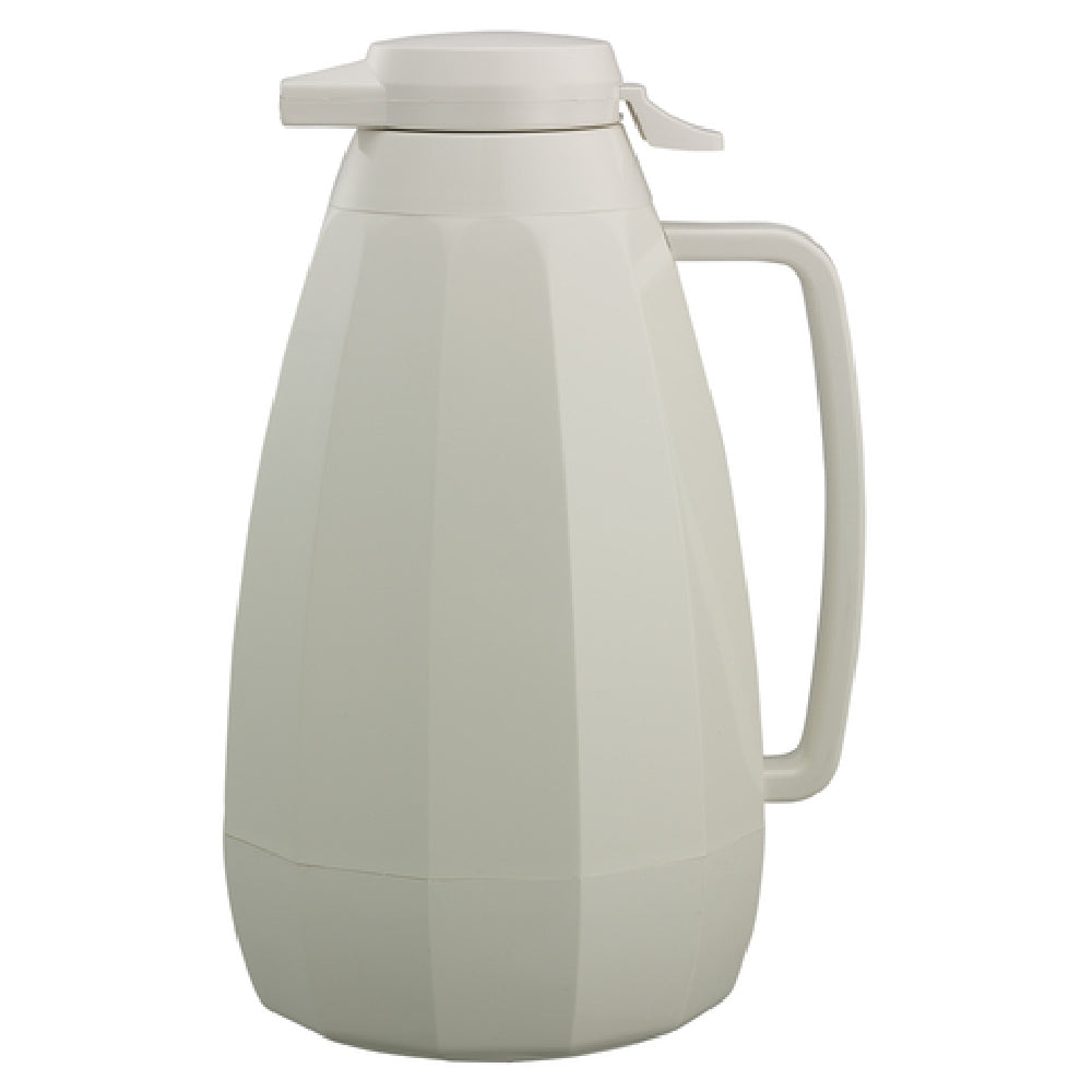 Service Ideas, NG421WH, New Generation® Server, 2 liter (67.6 oz.), 5-1/4" x 7" x 11", retention: 2-3 hours, faceted body, welded seams, reinforced handle, dishwasher safe, double-wall, foam insulated, push-button lid, non-drip spout, BPA free, ABS plastic, white, Made in USA (Priced per each, packed 6 each per case)