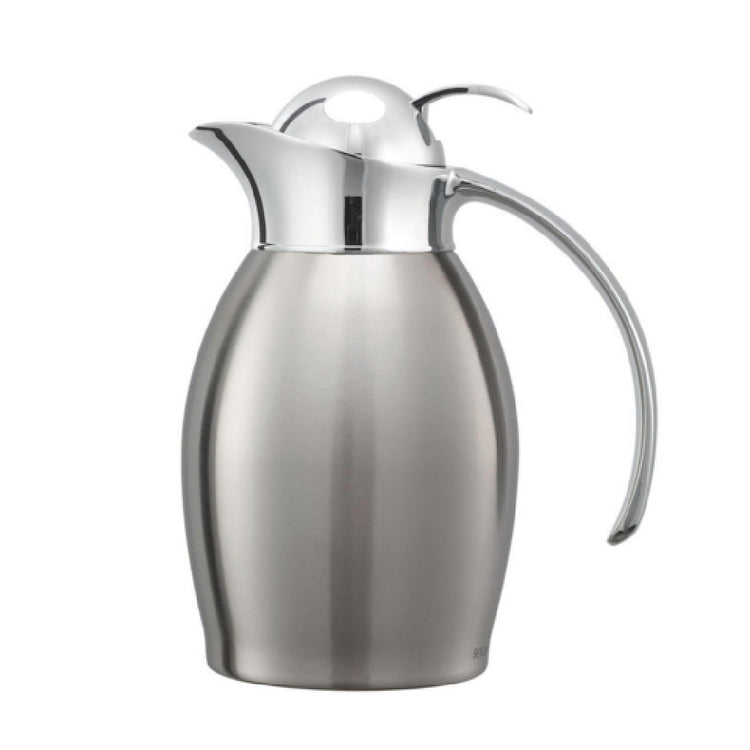 Service Ideas, NIC06BSPB, Nicollet Series Vacuum Insulated Carafe, 0.6 liter, push button lid, stainless vacuum, brushed with polished accents