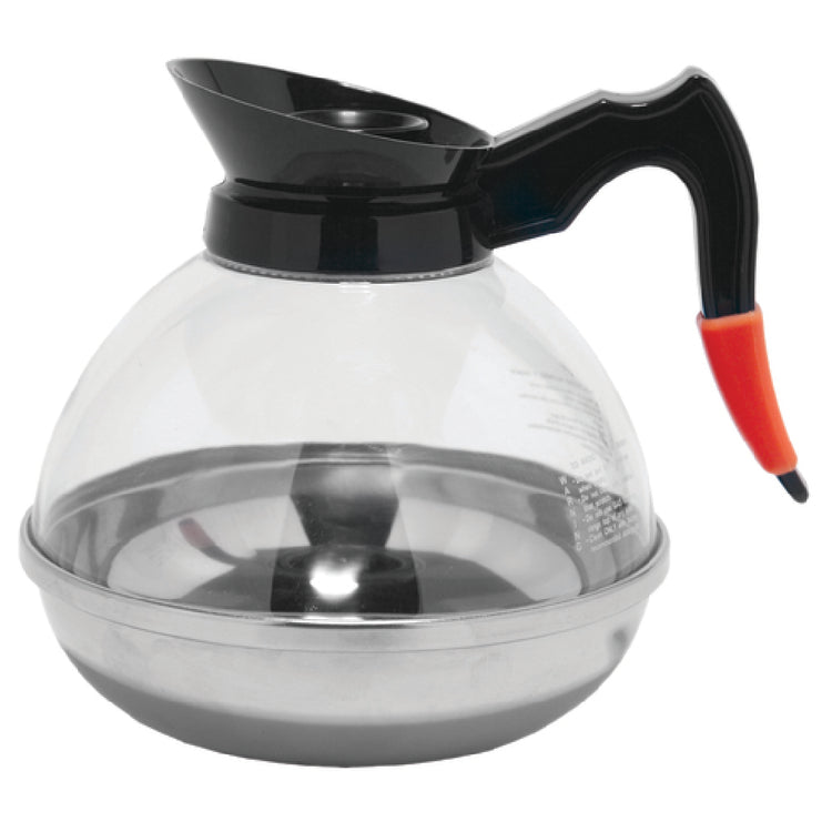 Service Ideas, PCB18, Coffee Decanter, 1.8 liter (60.8 oz.) 5" x 6-3/4" x 7", includes decaf indicator sleeve, hand wash, polycarbonate, clear Tritan body, stainless base, BPA free (Priced per each, packed 12 each per case)