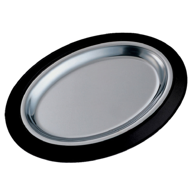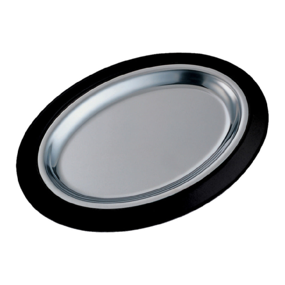 Service Ideas, RO128BLC, Thermo-Plate® Platter, complete set, 11-5/8" insert, 11-3/4" x 10" x 1-1/4" overall with underliner, stackable, oval, safe, dead air space for temperature retention, stainless steel insert, black polyester underliner, Made in USA