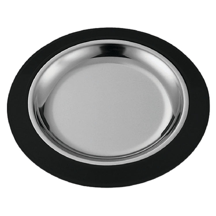 Service Ideas, RT701BLC, Thermo-Plate® Platter, complete set, 7" dia. insert, 9-1/2" overall with underliner, round, stackable, dishwasher safe, dead air space for temperature retention, stainless steel insert, black polyester underliner, Made in USA