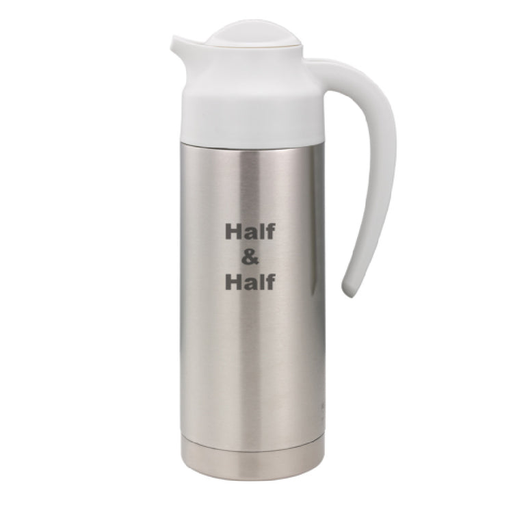 Service Ideas, S2SN100HHETWHT, SteelVac™ Vacuum Creamer, 1 liter (33.8 oz.), 3-1/2" x 6" x 11-1/2", "Half & Half" etched on side, retention: 4-6 hours, dishwasher safe, smooth body, double-wall, unbreakable liner, white screw-on lid, stainless steel base, brushed, NSF