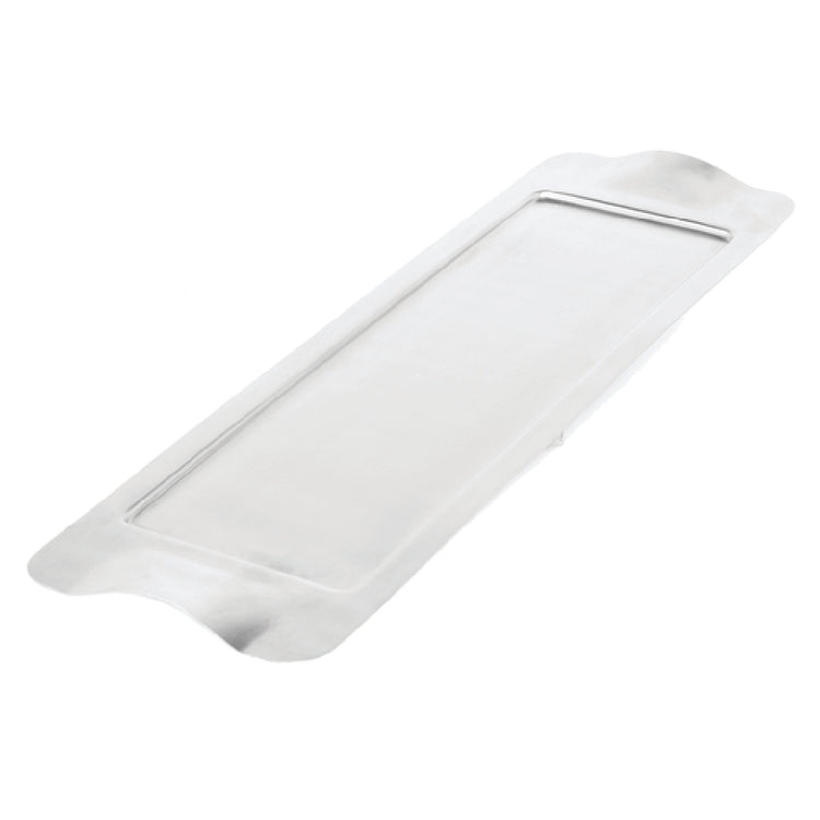 Service Ideas, SB-41, Mod18 Steelworks Tray, 20-1/2" x 6-1/2" (16" x 5" inner dimensions), rectangle, narrow, stackable, contoured handles, dishwasher safe, 18/8 stainless steel, brushed finish (Priced per each, packed 12 each per case)