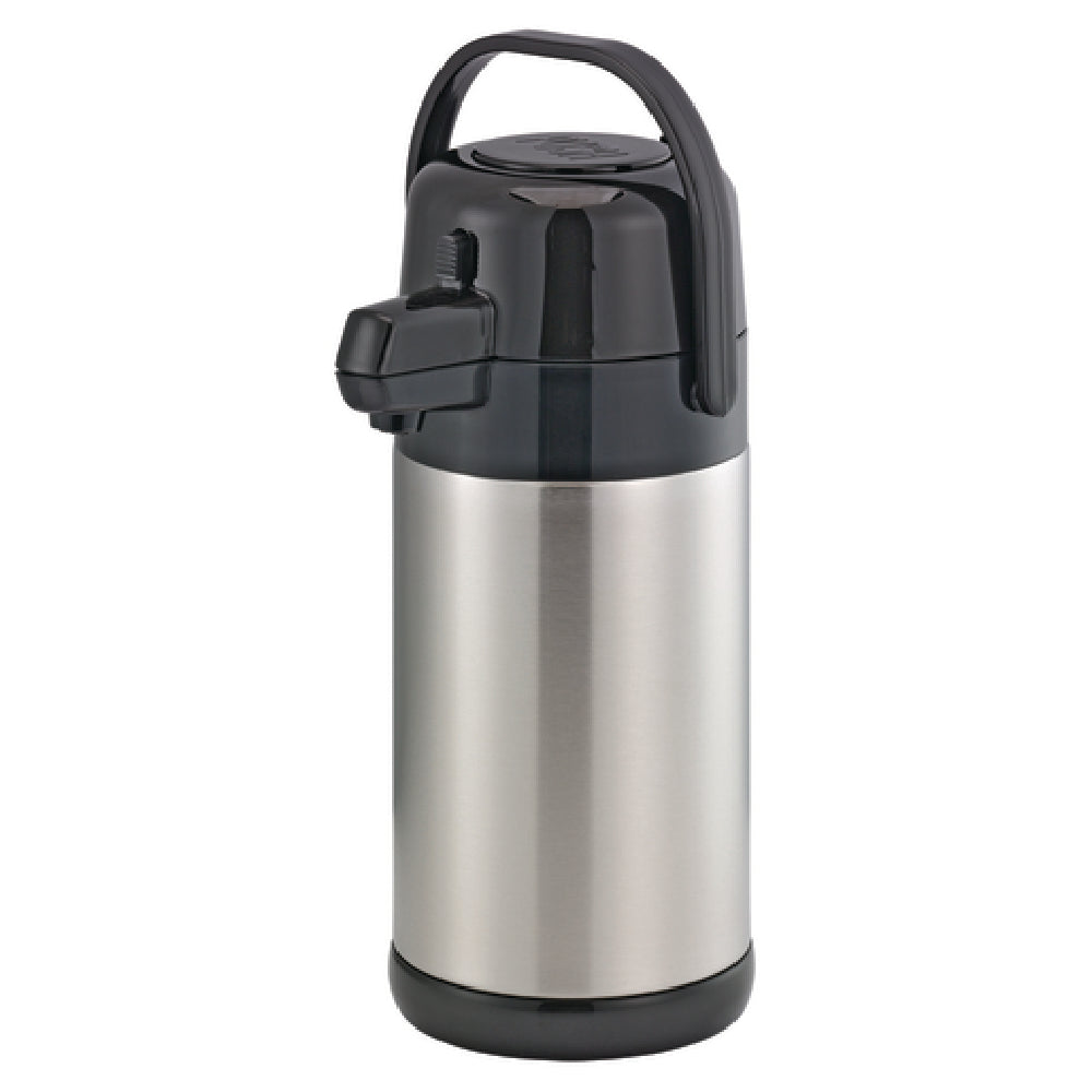 Service Ideas, SECA22S, SECA-Air Airpot, 2.2 liter (74.4 oz.), 5-1/2" x 7-1/2" x 13", retention: 4-6 hours, smooth body, stainless steel liner, pump style, black lid, vacuum insulated, hand wash (do not submerge), stainless steel, brushed (Priced per each, packed 6 each per case)